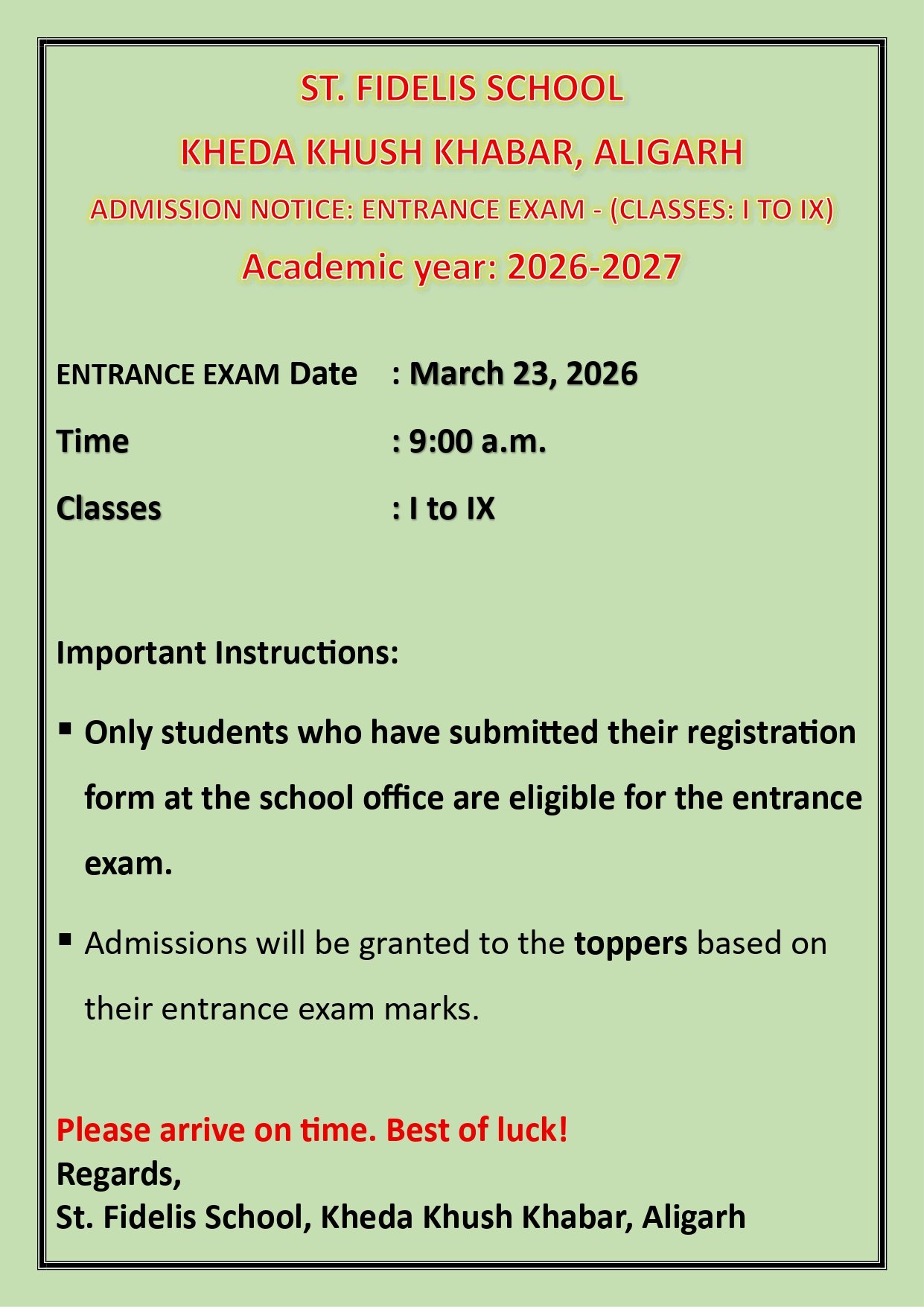 St. Fidelis School, Kheda Khush Khabar, Aligarh