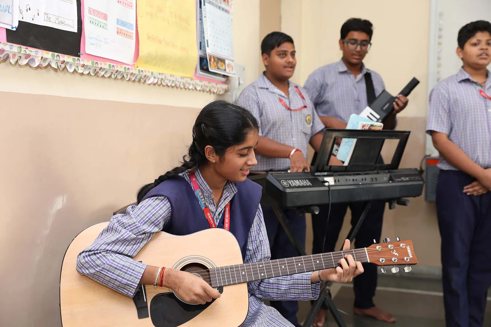 Our music room is a vibrant space where students can explore their musical talents and experience the joy of making music. Equipped with a variety of instruments, the music room fosters creativity, cognitive development, and emotional growth. It's a place where students can discover their passion for music and develop their skills.